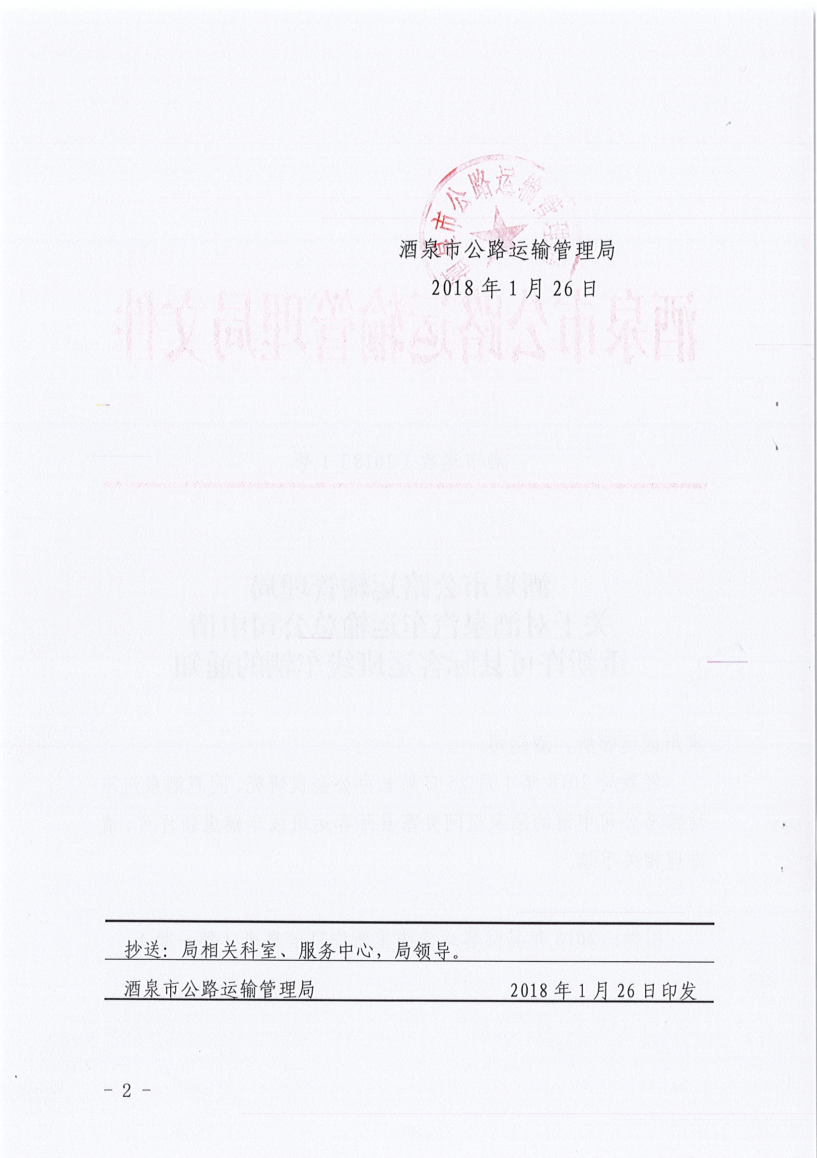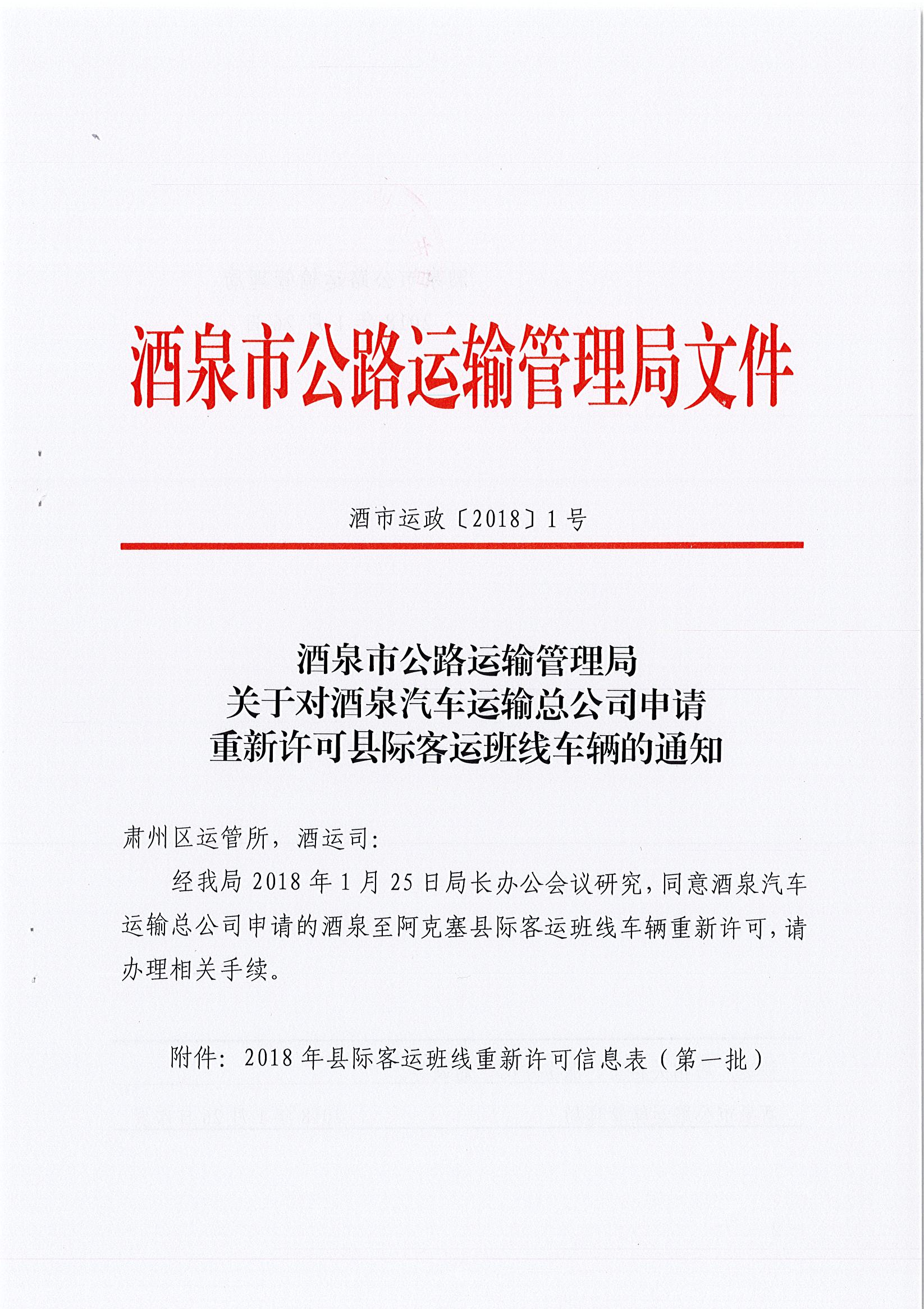 关于对酒泉汽车运输总公司申请重新许可县级客运班线车辆的通知