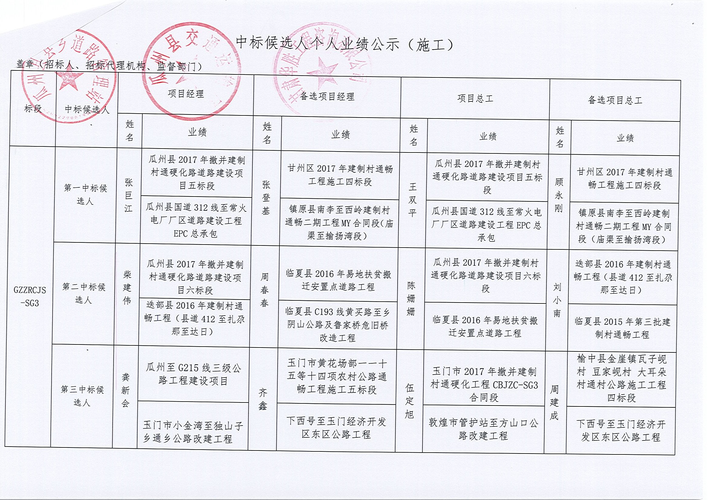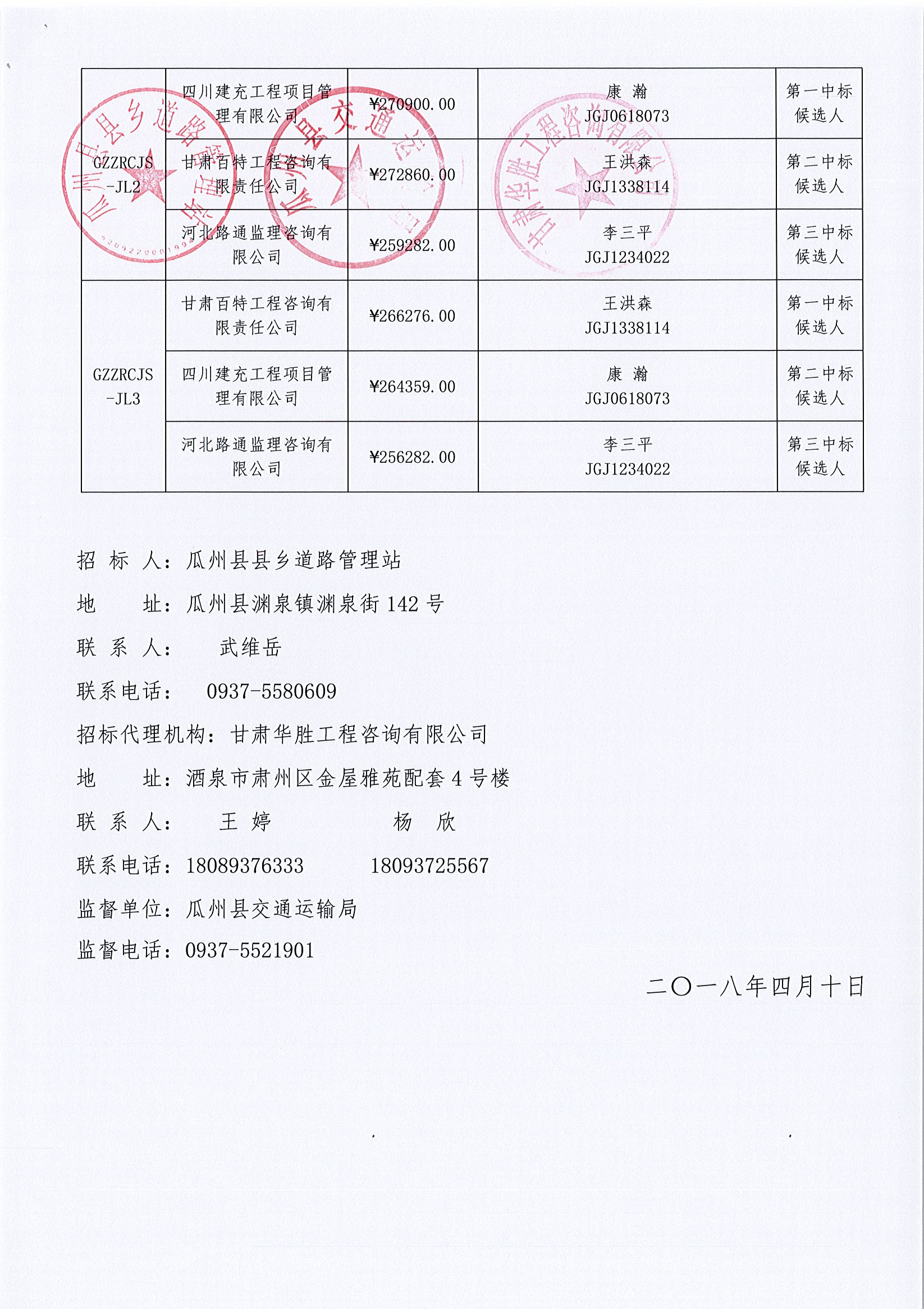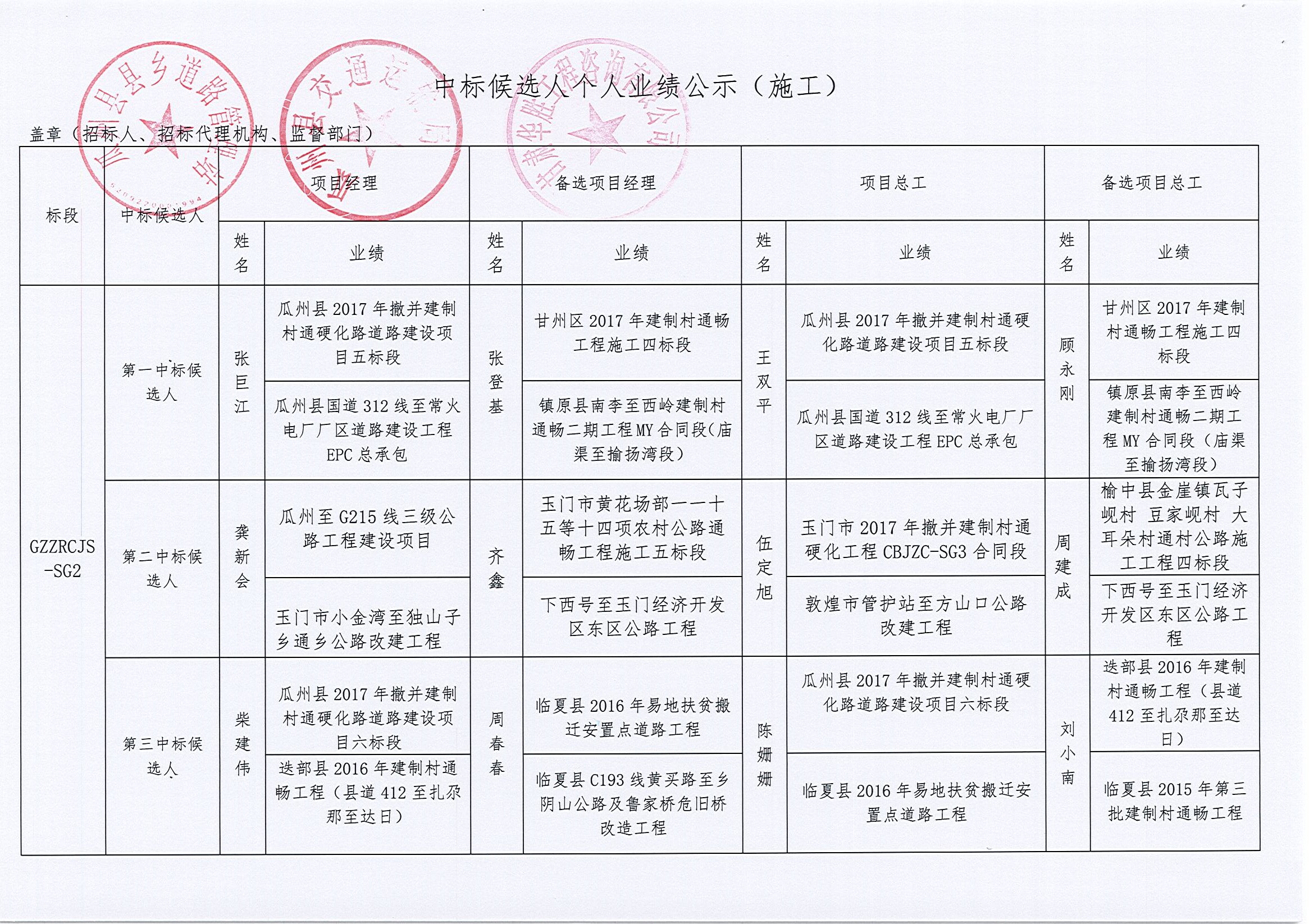 瓜州县自然村道路及村内巷道硬化项目(第一批)中标公示