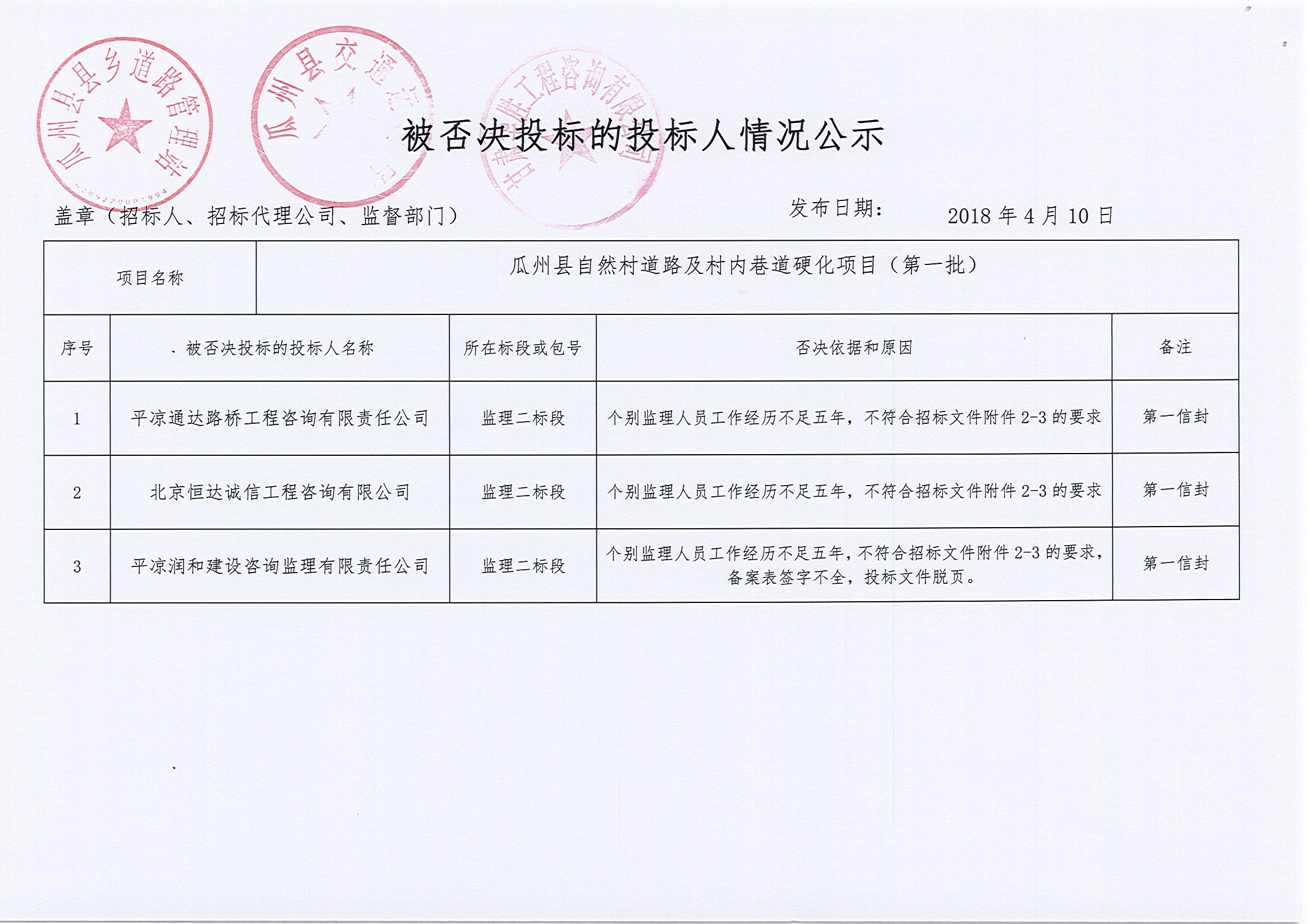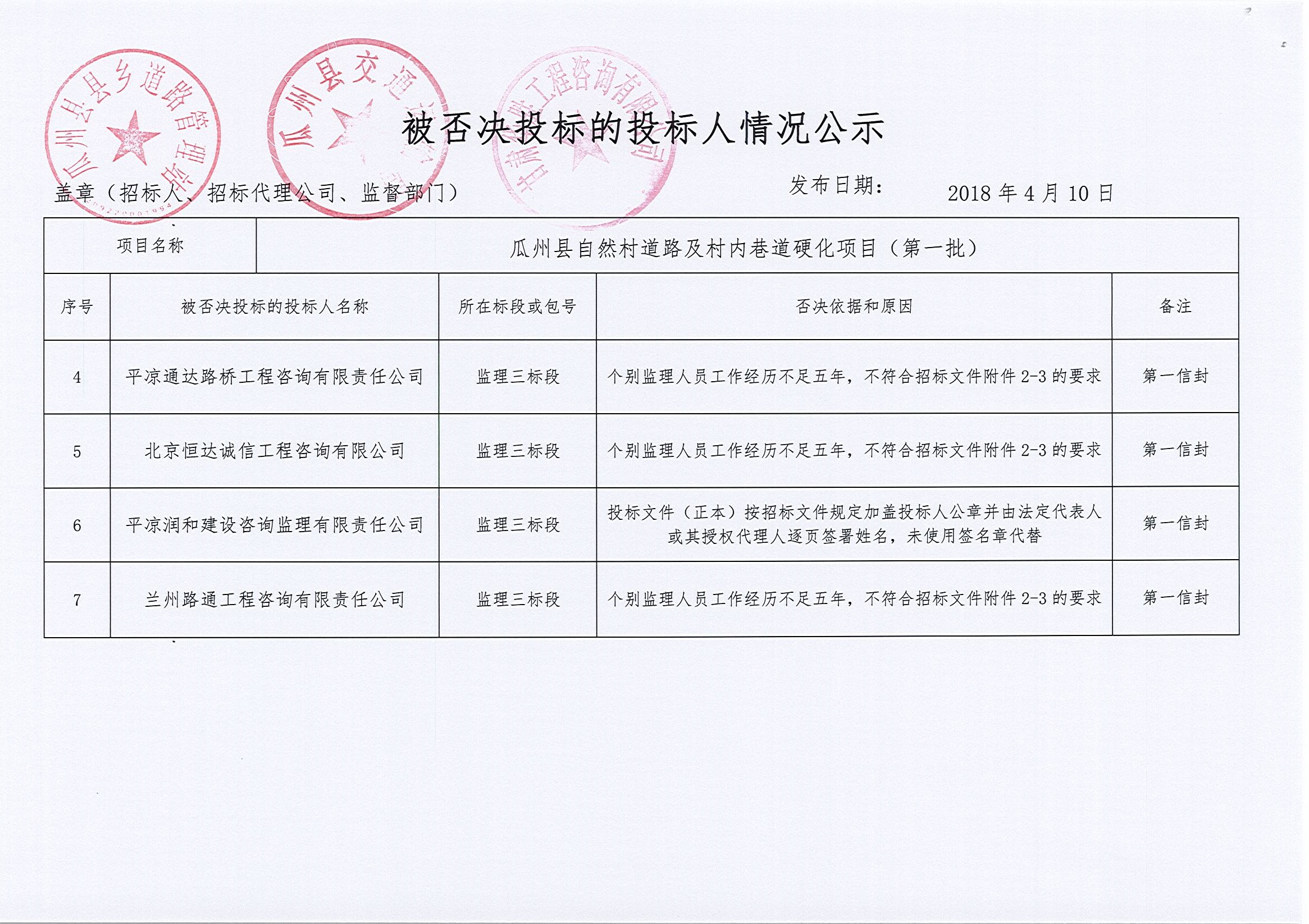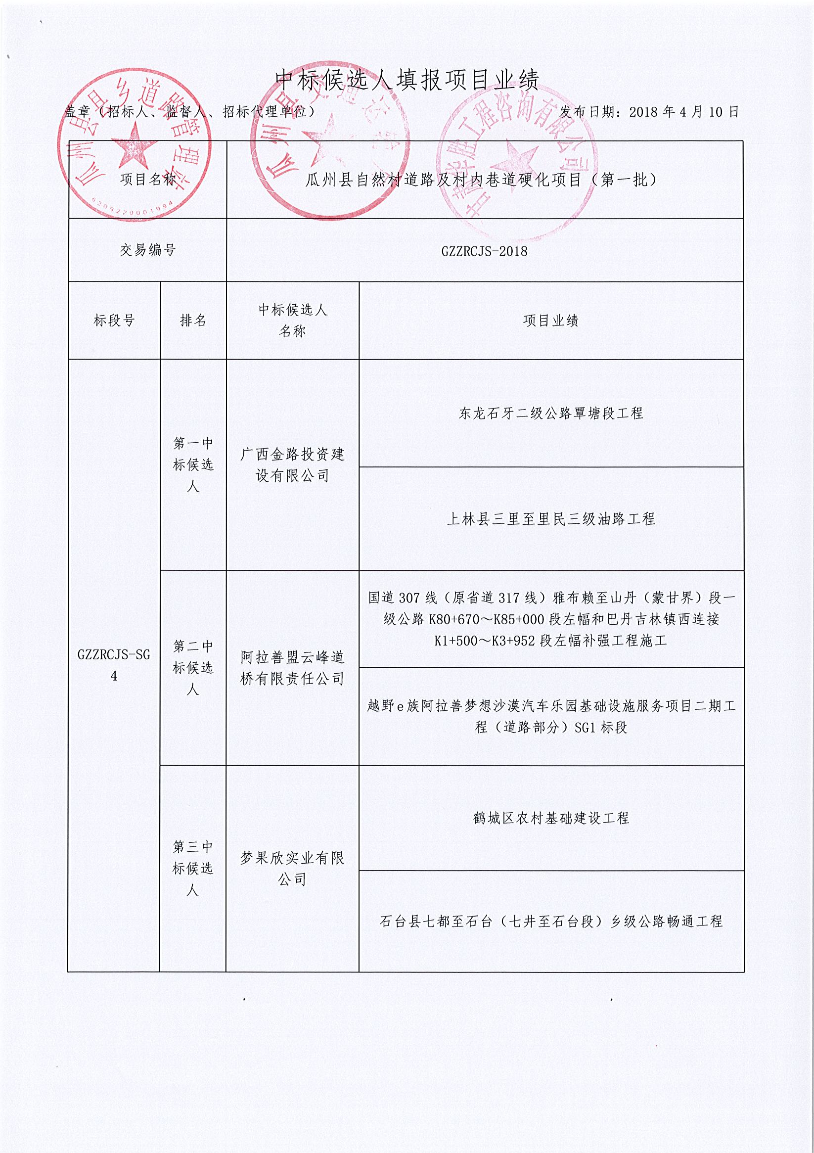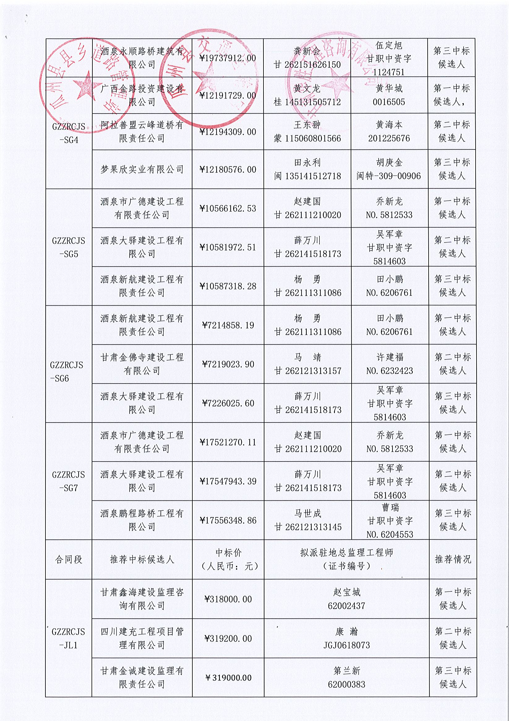 瓜州县自然村道路及村内巷道硬化项目(第一批)中标公示