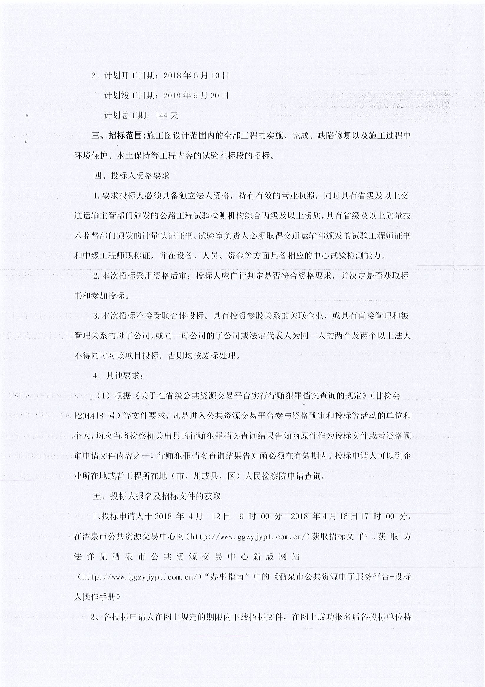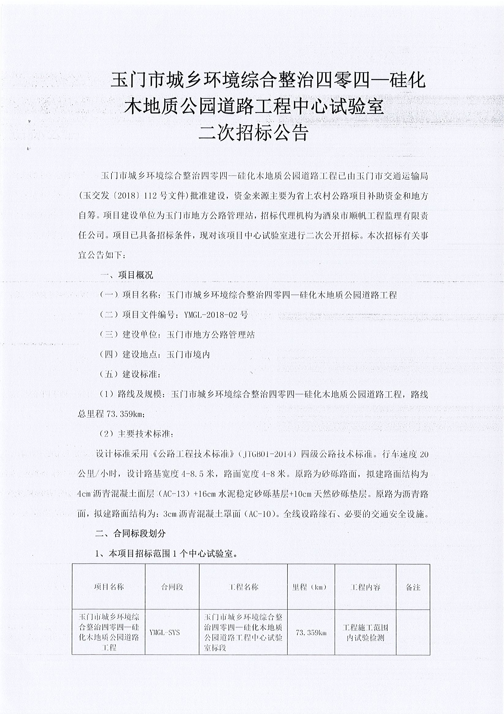 玉门市城乡环境综合整治四零四——硅化木地址公园道路工程中心试验室二次招标公告